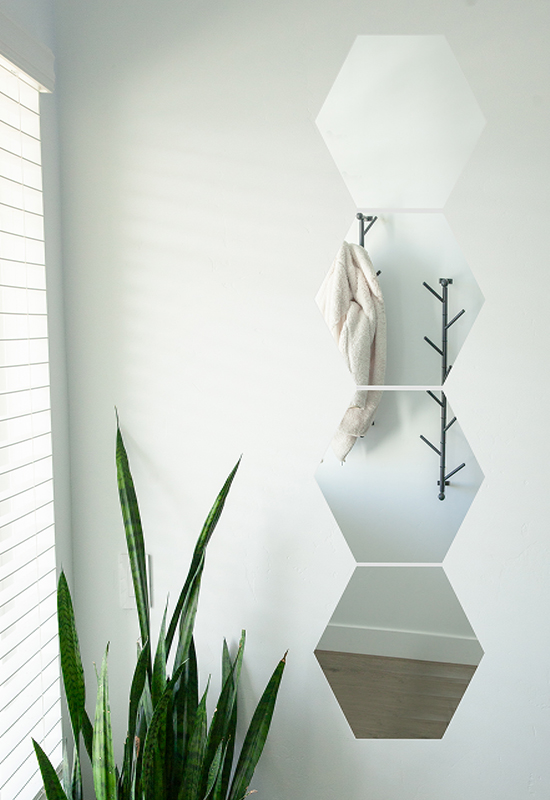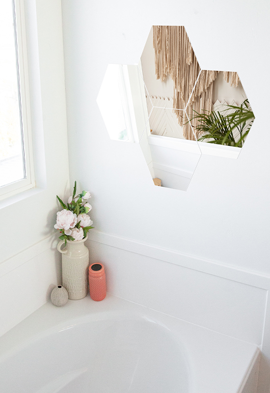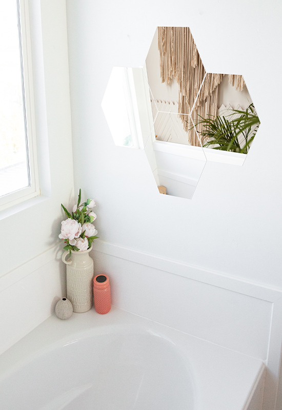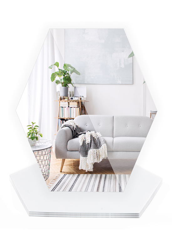 Wall mirror sheets size and shape: Our products come in two shapes and three sizes – The Hexagonal shape with sizes 10.5” x 10.5” – 4 packs, 8 packs, the rectangular shapes with sizes 10’’ x 16’’ – 4 packs, 8 packs & 10 packs, the oval 10’’ x 16’’ – 4 packs, 8 packs & 10 packs and 11’’ x 12’’ – 4 packs, 8 packs, 10 packs. These self-adhesive mirrors could decorate bathroom, home gym, bedroom, which can be mounted on wall,tiles,closets,doors.
